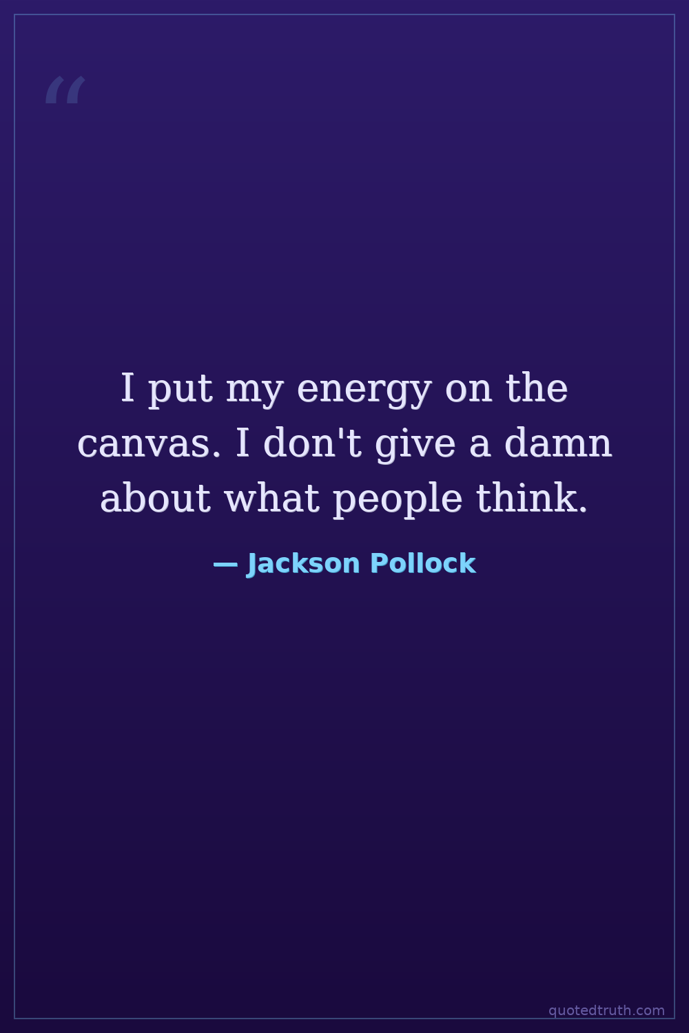 I put my energy on the canvas. I don't give a damn about what people think.