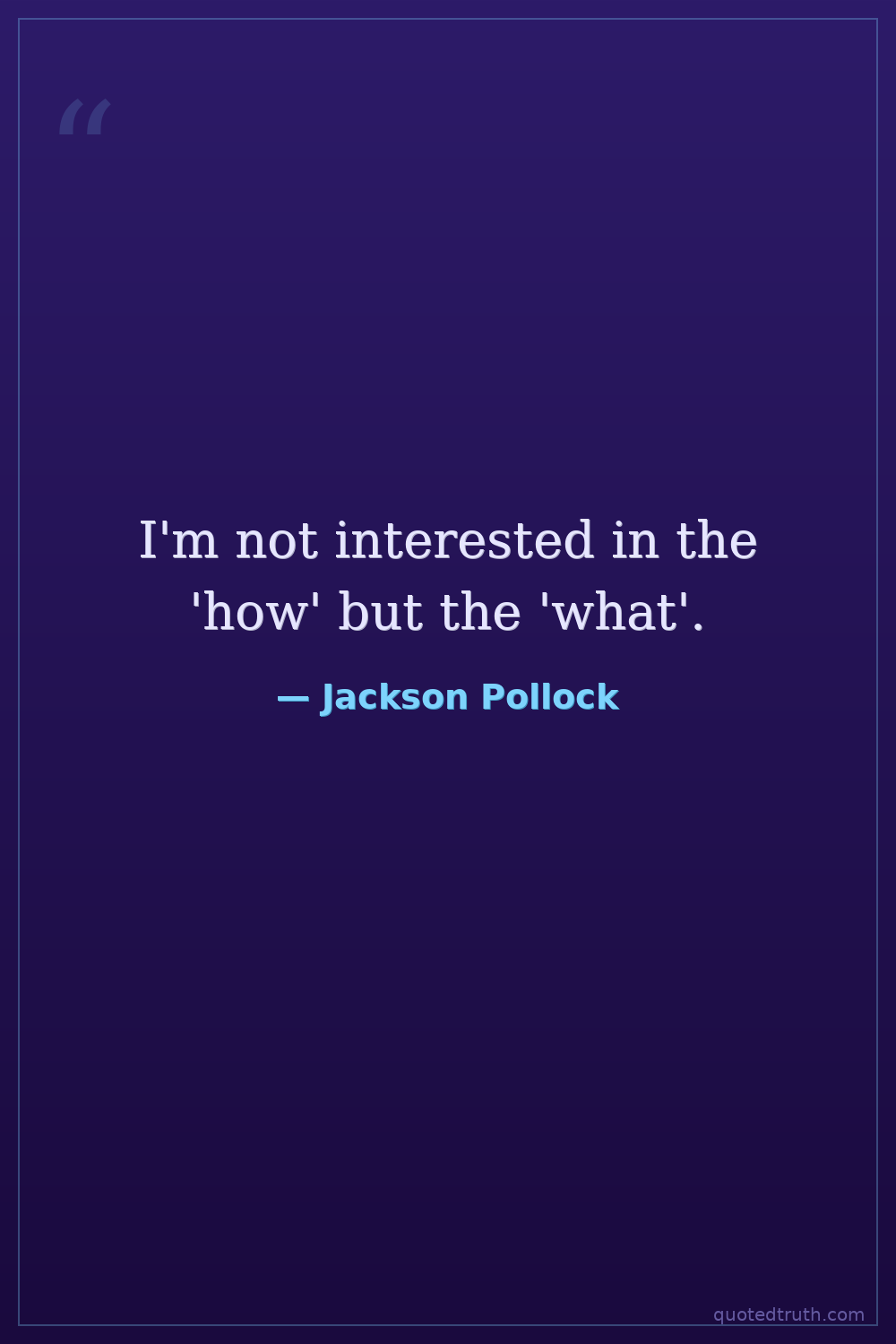 "When I am in my painting, I'm not aware of what I'm doing. It is only after a sort of 'get acquainted' period that I see what I have been about. I have no fears about making changes, destroying the im…"