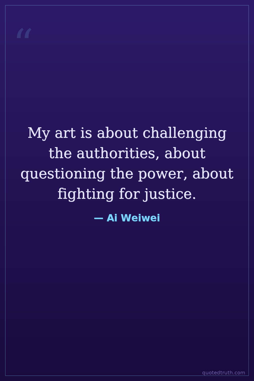 My art is about challenging the authorities, about questioning the power, about fighting for justice.