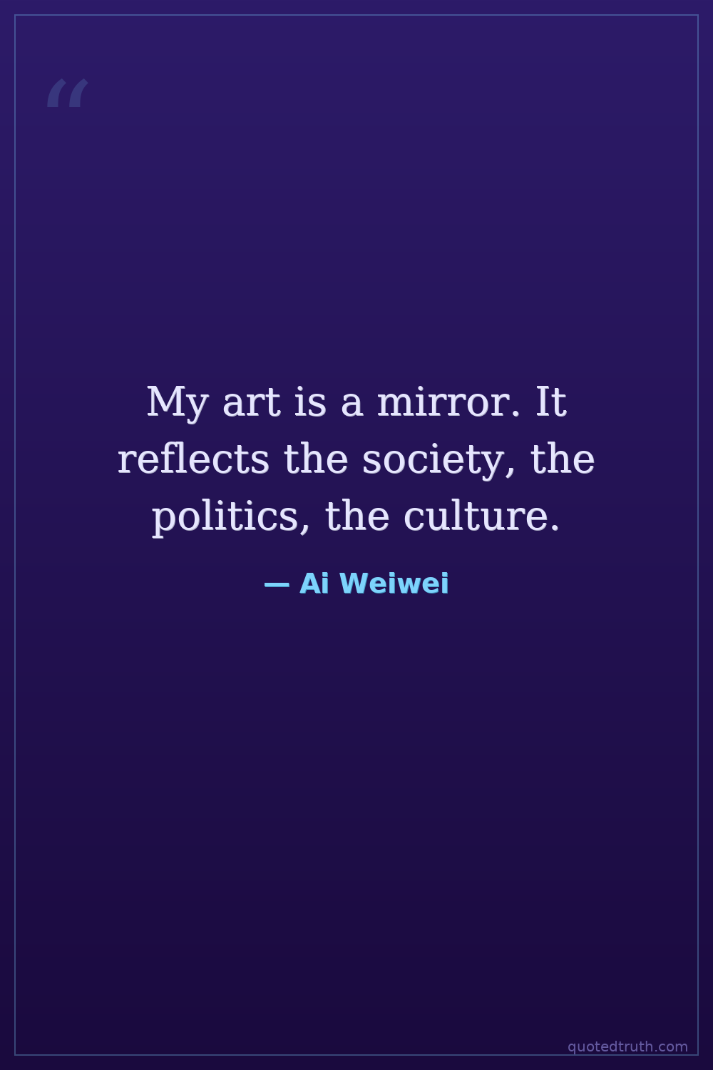 My art is a mirror. It reflects the society, the politics, the culture.