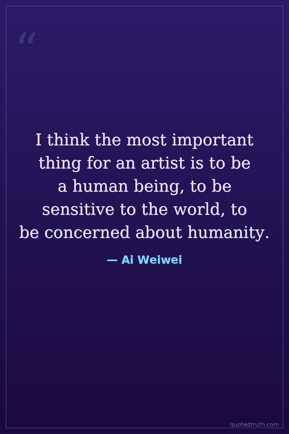 I think the most important thing for an artist is to be a human being, to be sensitive to the world, to be concerned about humanity.