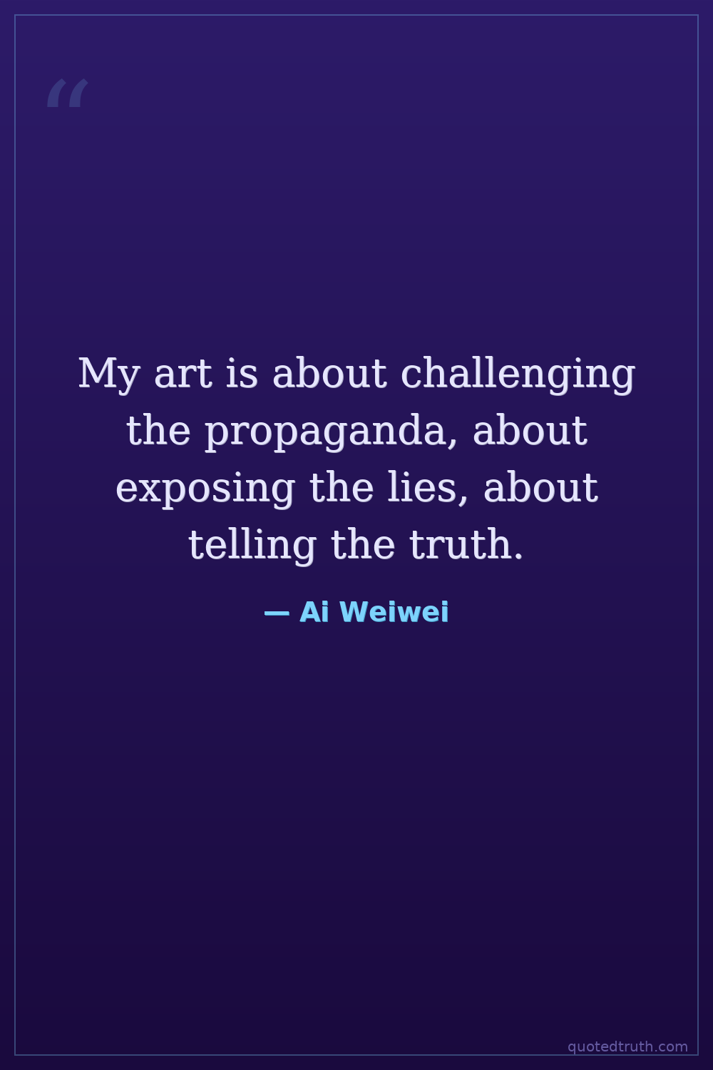 My art is about challenging the propaganda, about exposing the lies, about telling the truth.