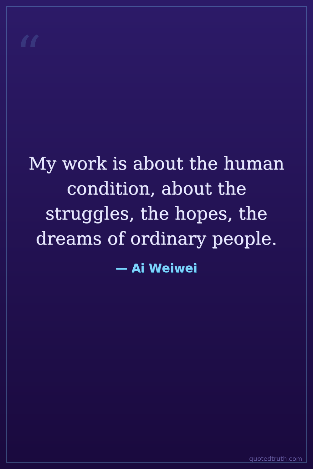 My work is about the human condition, about the struggles, the hopes, the dreams of ordinary people.