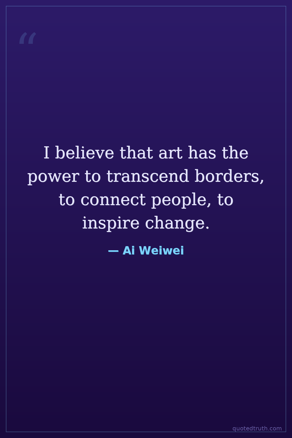 I believe that art has the power to transcend borders, to connect people, to inspire change.