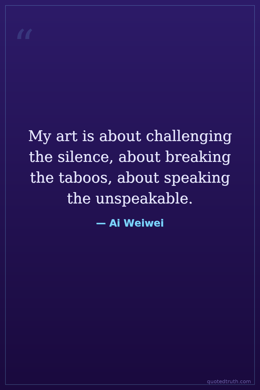 My art is about challenging the silence, about breaking the taboos, about speaking the unspeakable.