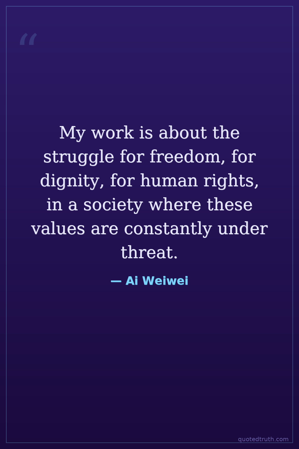 My work is about the struggle for freedom, for dignity, for human rights, in a society where these values are constantly under threat.