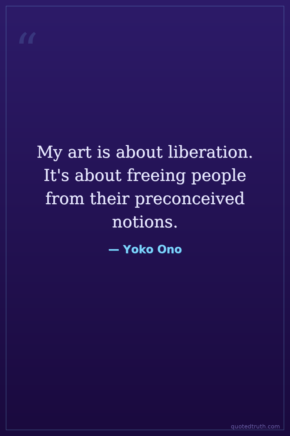 My art is about liberation. It's about freeing people from their preconceived notions.
