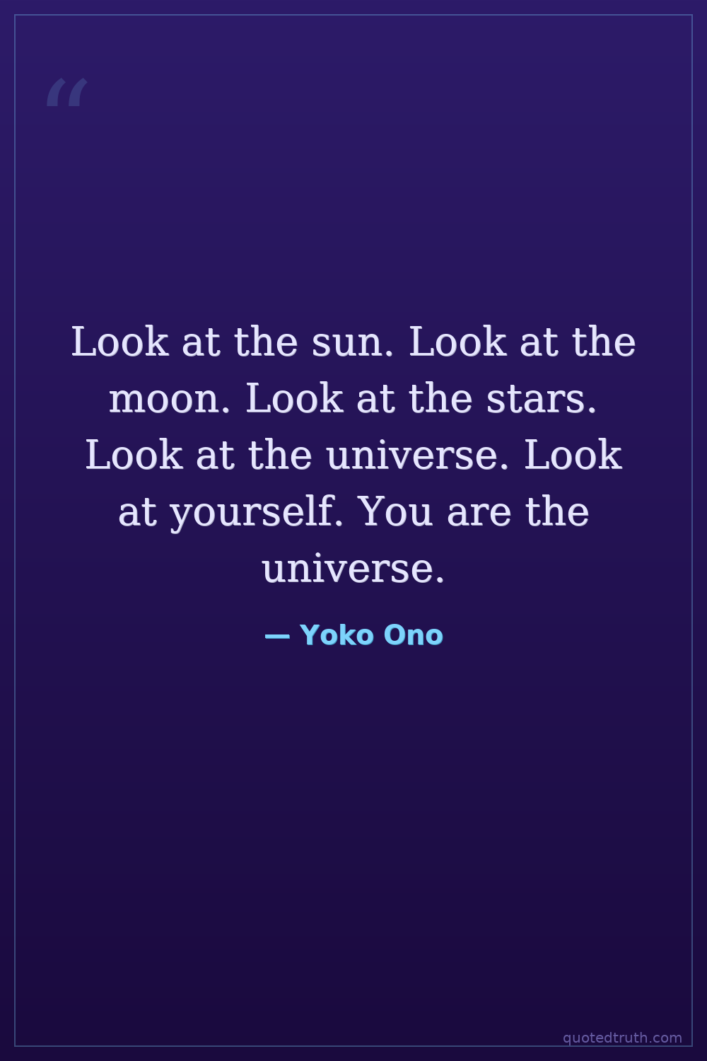 Look at the sun. Look at the moon. Look at the stars. Look at the universe. Look at yourself. You are the universe.