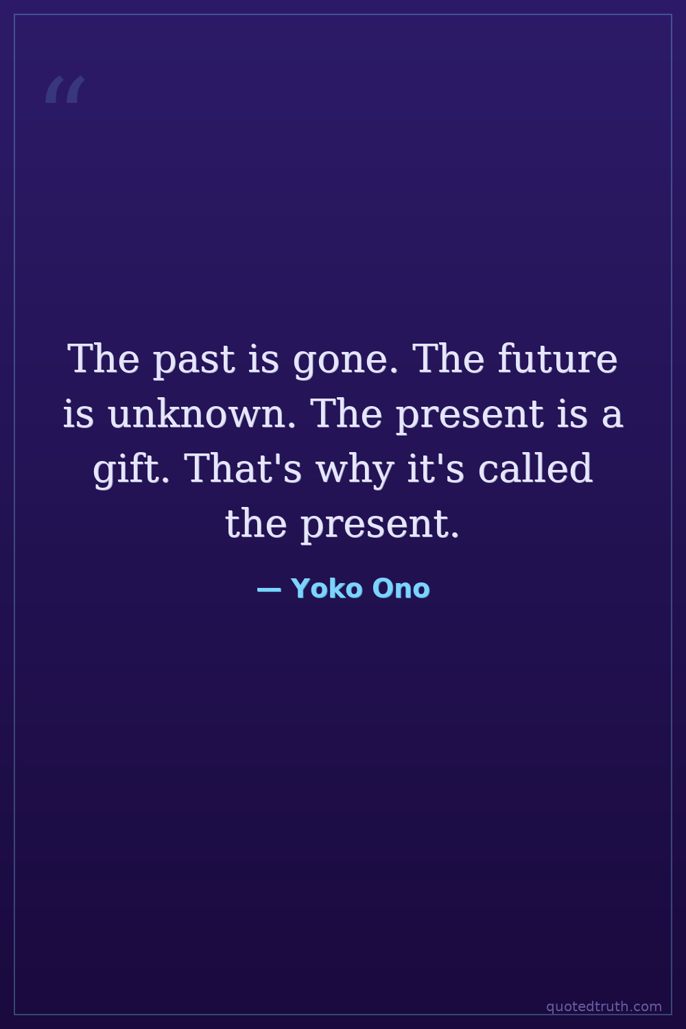 The past is gone. The future is unknown. The present is a gift. That's why it's called the present.