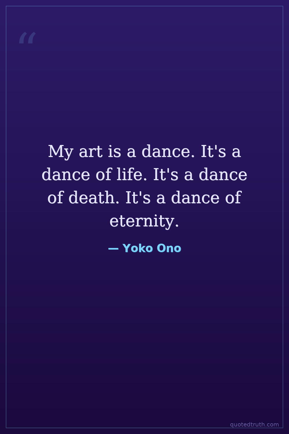 My art is a dance. It's a dance of life. It's a dance of death. It's a dance of eternity.