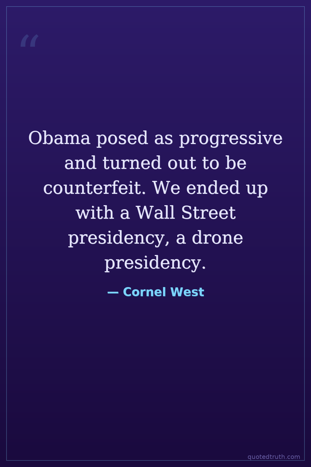 Obama posed as progressive and turned out to be counterfeit. We ended up with a Wall Street presidency, a drone presidency.