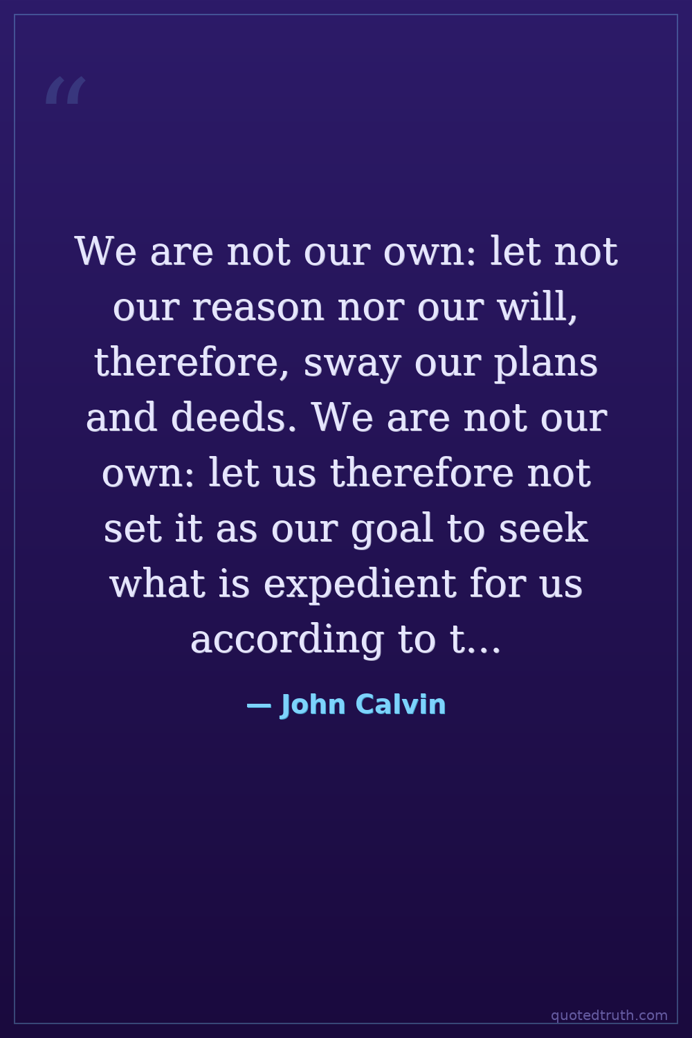 We are not our own: let not our reason nor our will, therefore, sway our plans and deeds. We are not our own: let us therefore not set it as our goal to seek what is expedient for us according to the flesh.