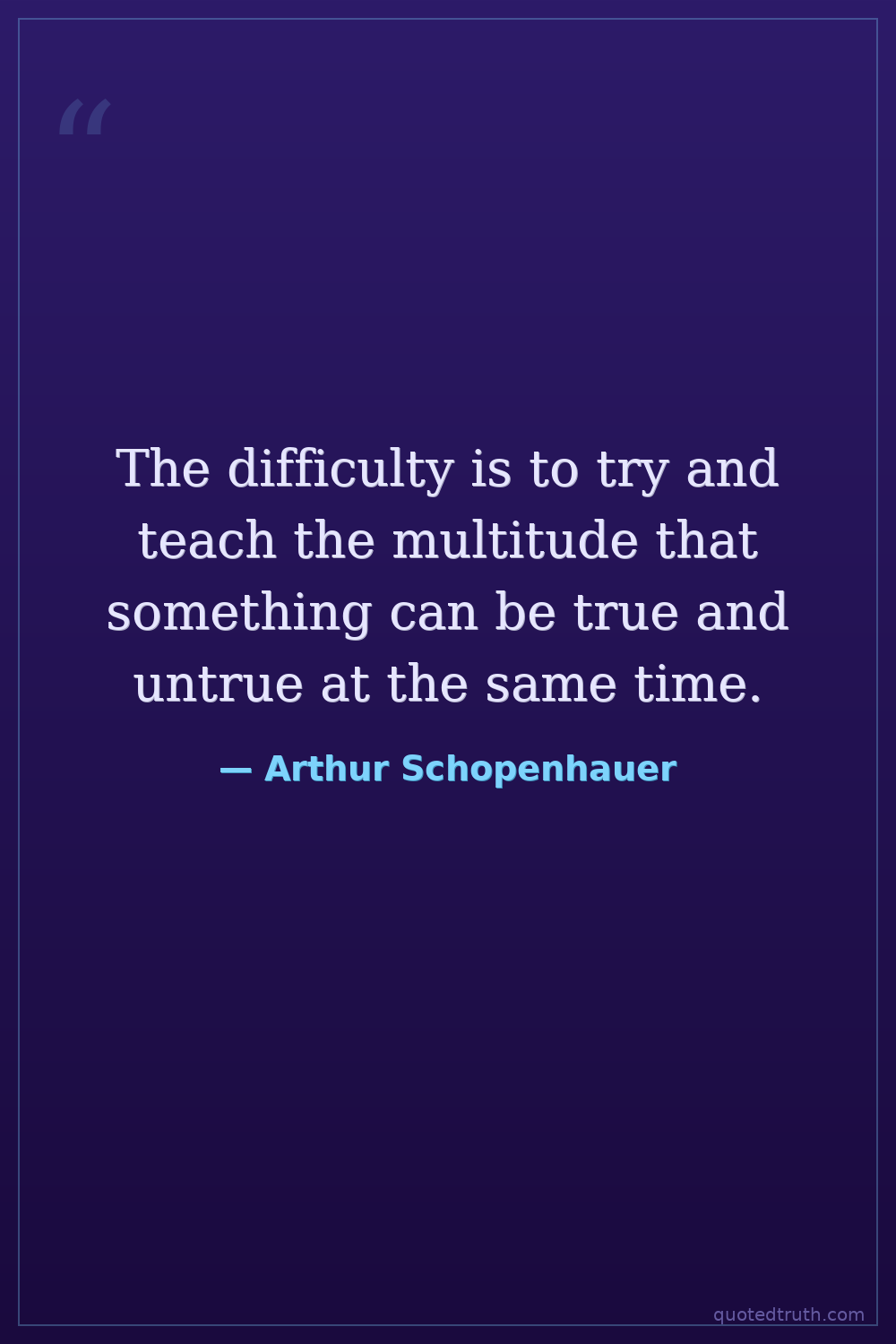 The difficulty is to try and teach the multitude that something can be true and untrue at the same time.