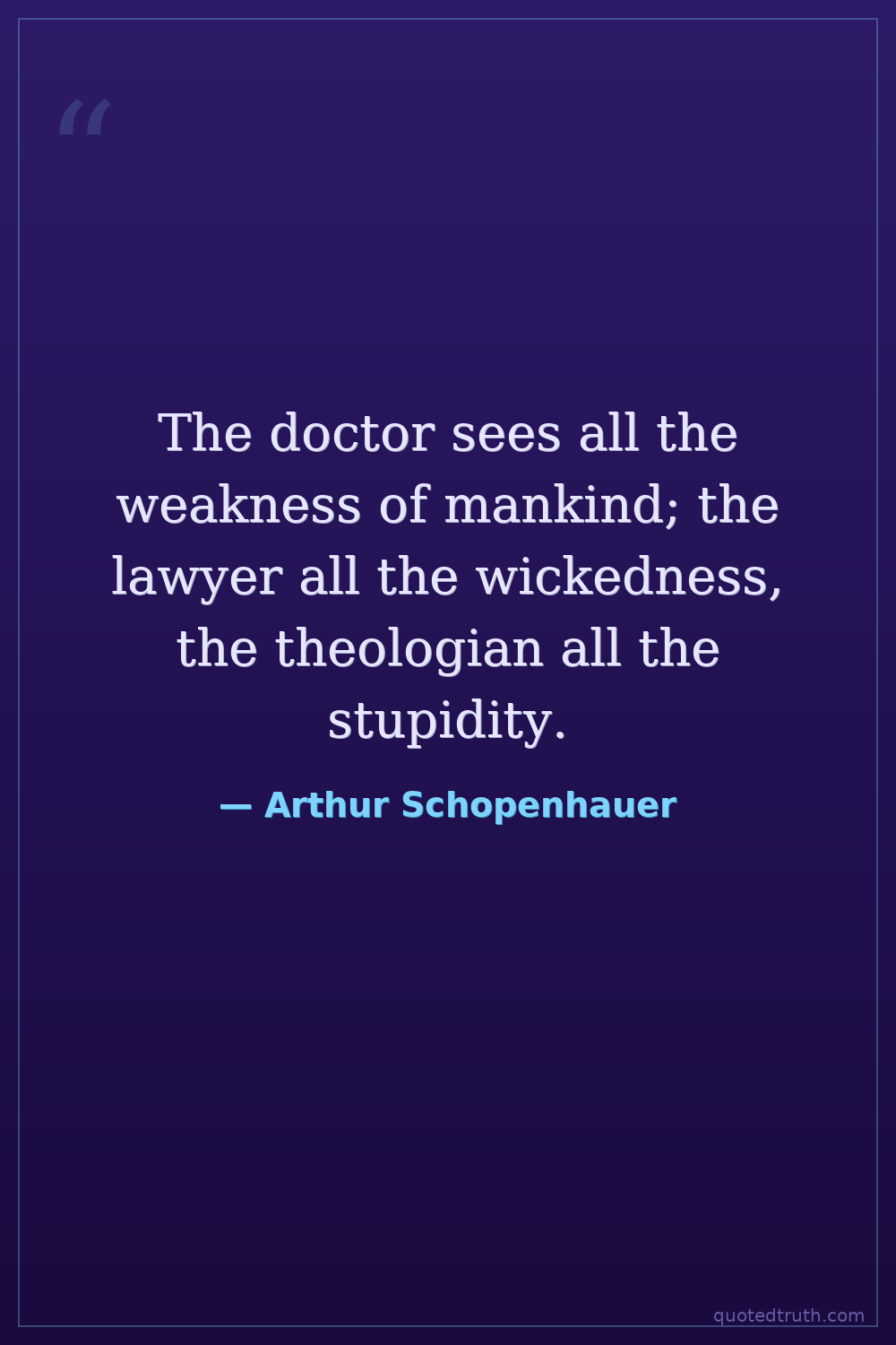 The doctor sees all the weakness of mankind; the lawyer all the wickedness, the theologian all the stupidity.
