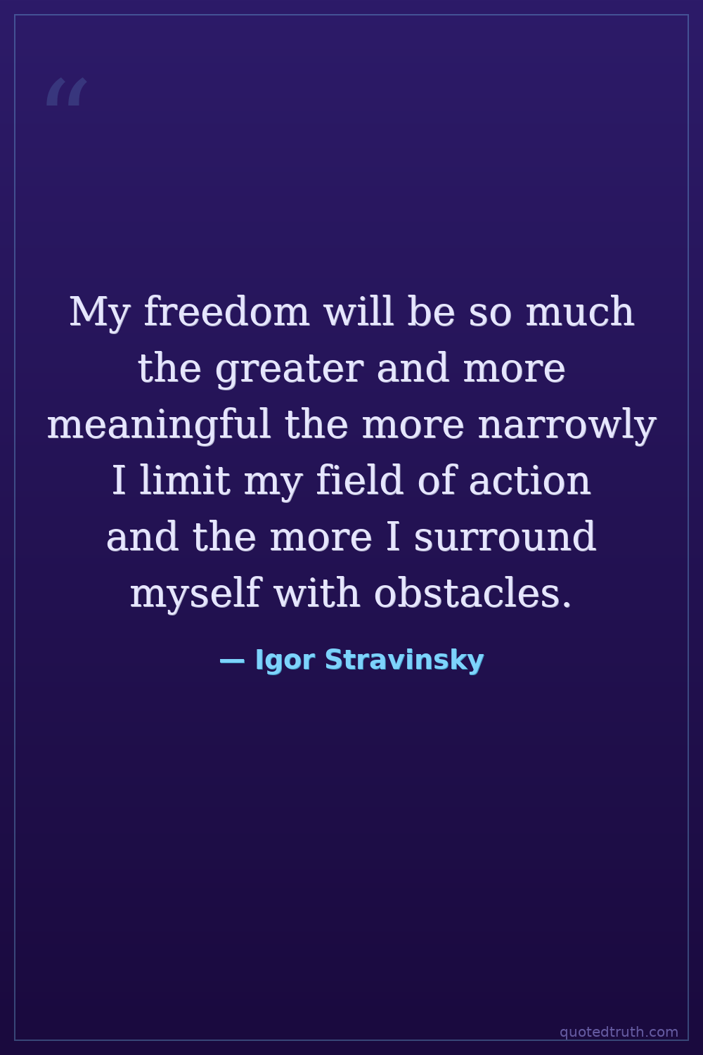 My freedom will be so much the greater and more meaningful the more narrowly I limit my field of action and the more I surround myself with obstacles.