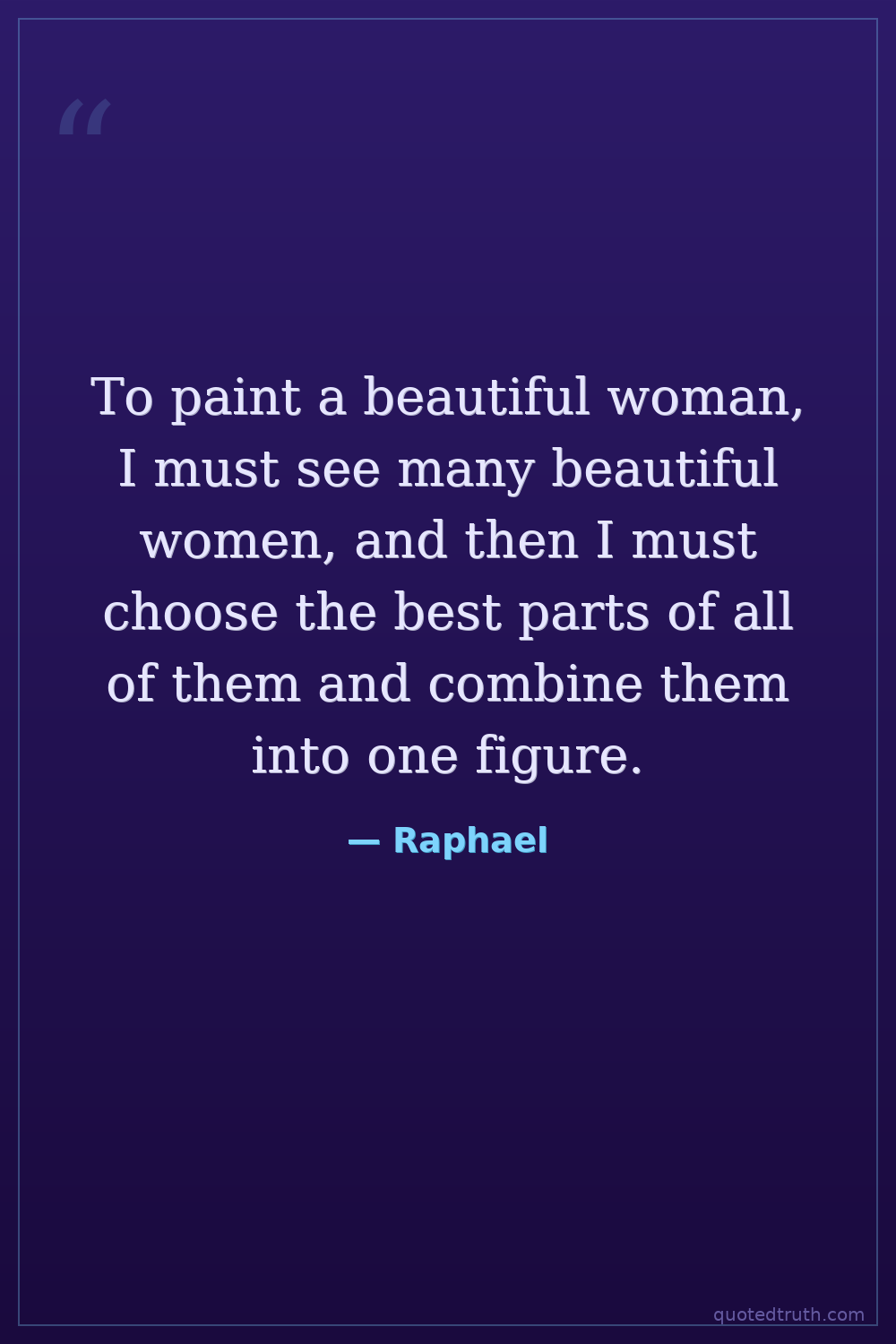 To paint a beautiful woman, I must see many beautiful women, and then I must choose the best parts of all of them and combine them into one figure.