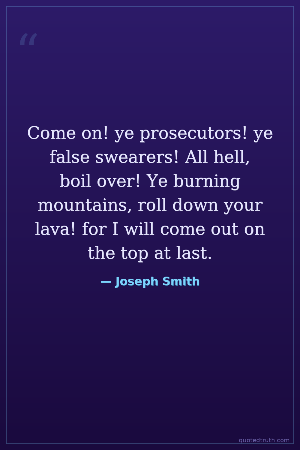 Come on! ye prosecutors! ye false swearers! All hell, boil over! Ye burning mountains, roll down your lava! for I will come out on the top at last.