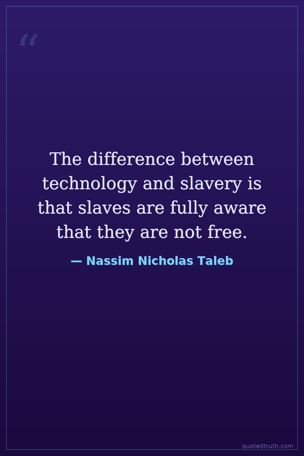 The difference between technology and slavery is that slaves are fully aware that they are not free.