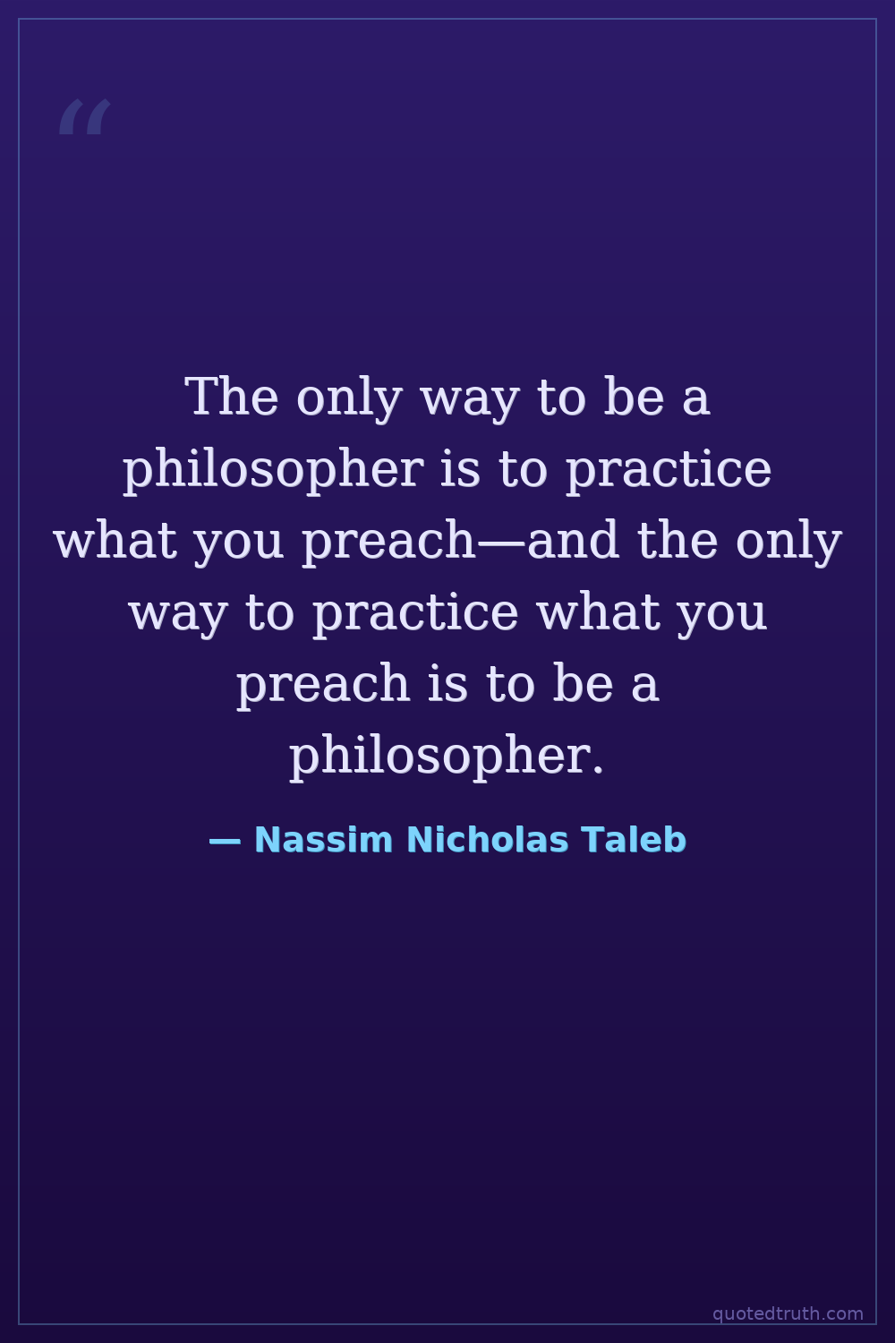 The only way to be a philosopher is to practice what you preach—and the only way to practice what you preach is to be a philosopher.