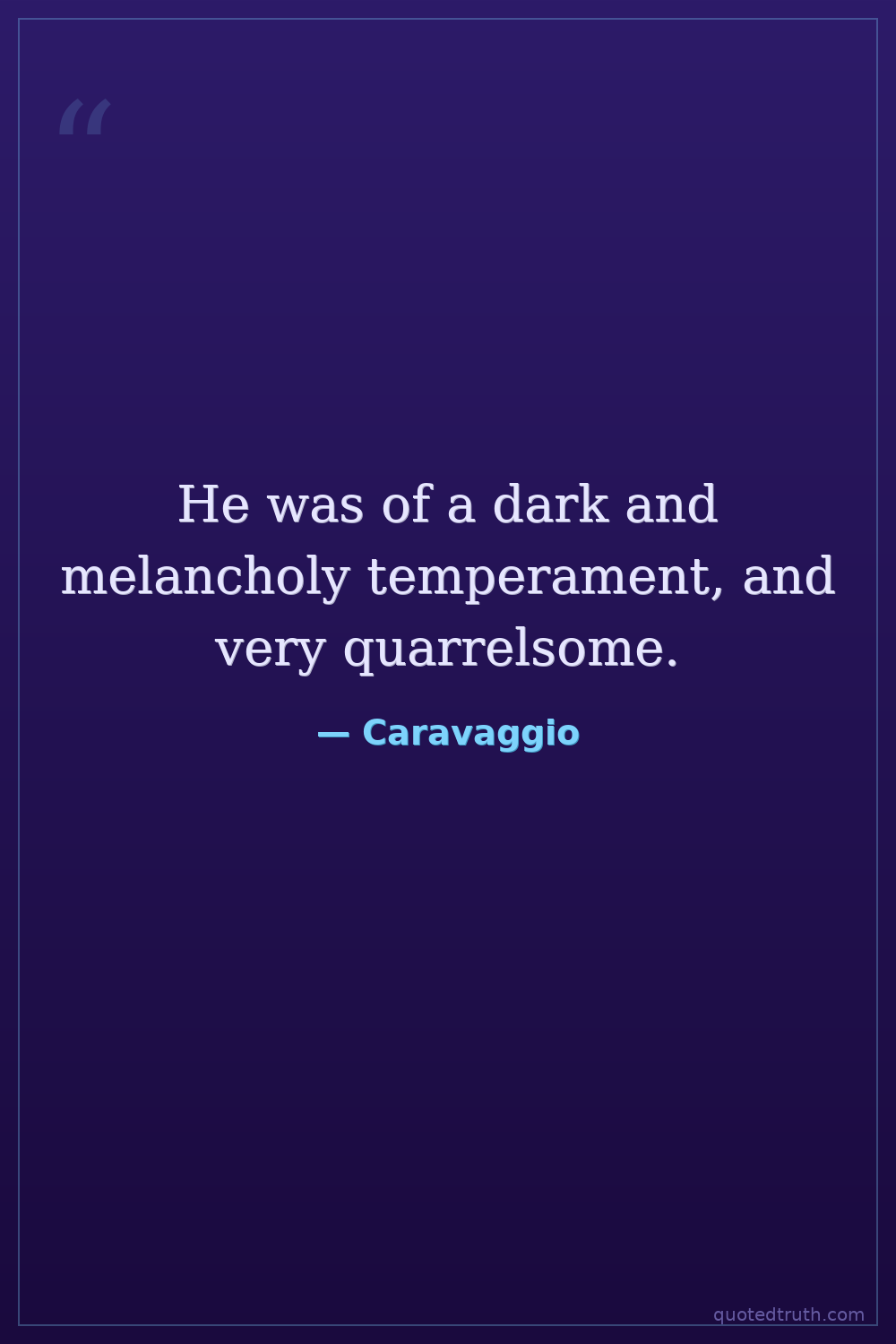 He was of a dark and melancholy temperament, and very quarrelsome.
