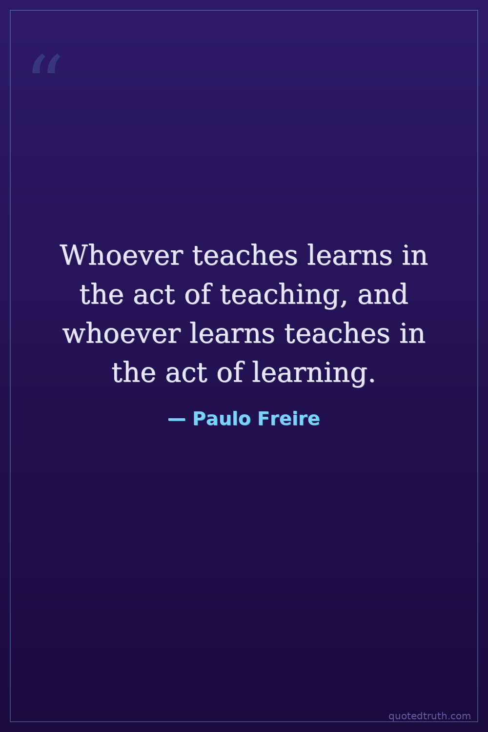 Whoever teaches learns in the act of teaching, and whoever learns teaches in the act of learning.