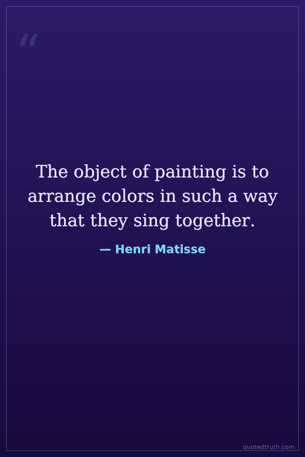 The object of painting is to arrange colors in such a way that they sing together.