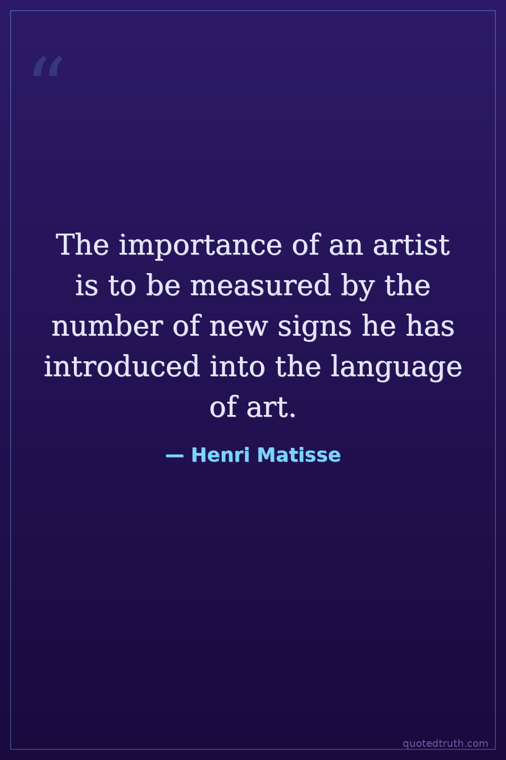 The importance of an artist is to be measured by the number of new signs he has introduced into the language of art.