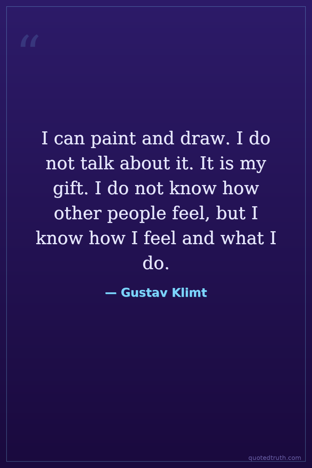 I can paint and draw. I do not talk about it. It is my gift. I do not know how other people feel, but I know how I feel and what I do.
