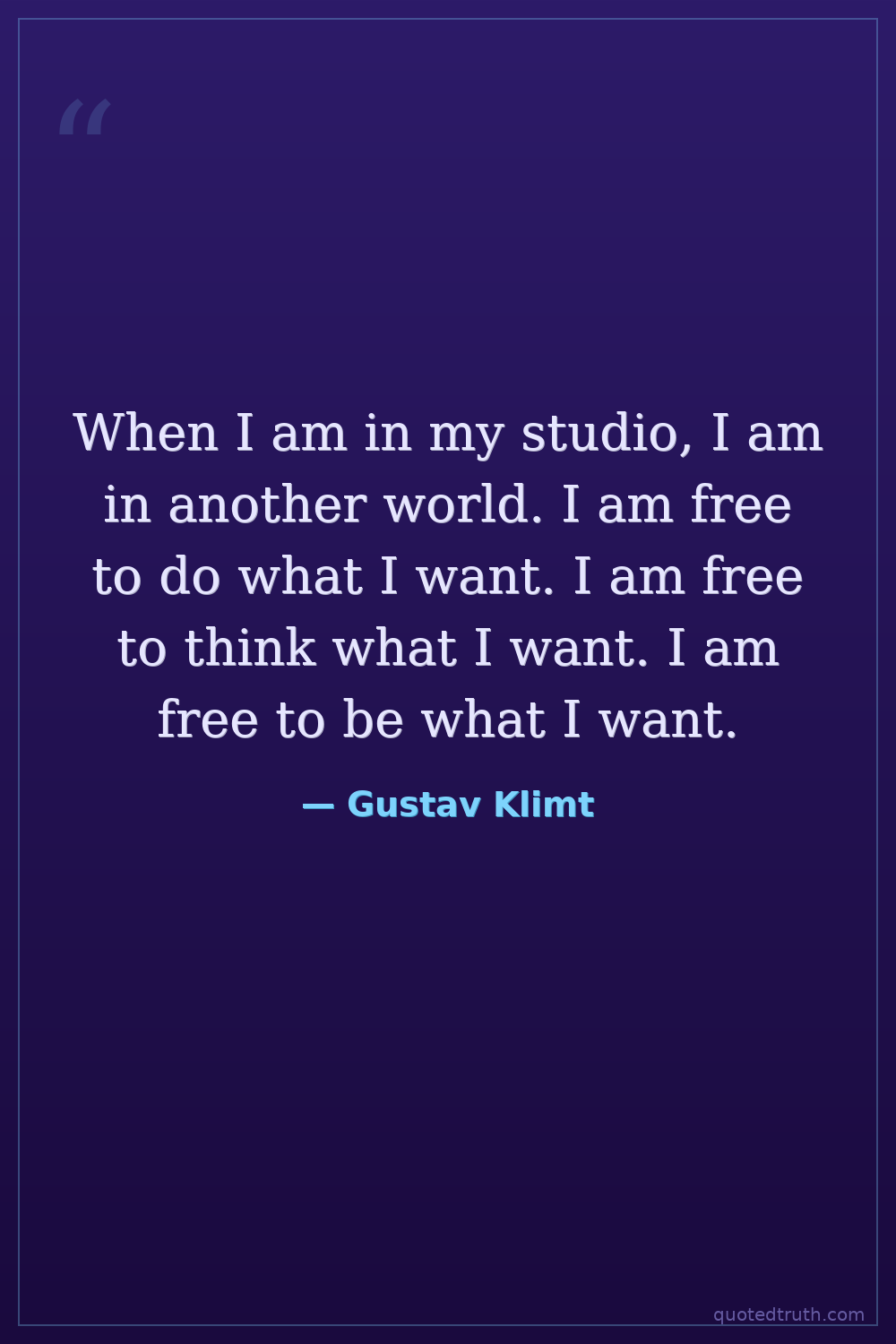 When I am in my studio, I am in another world. I am free to do what I want. I am free to think what I want. I am free to be what I want.