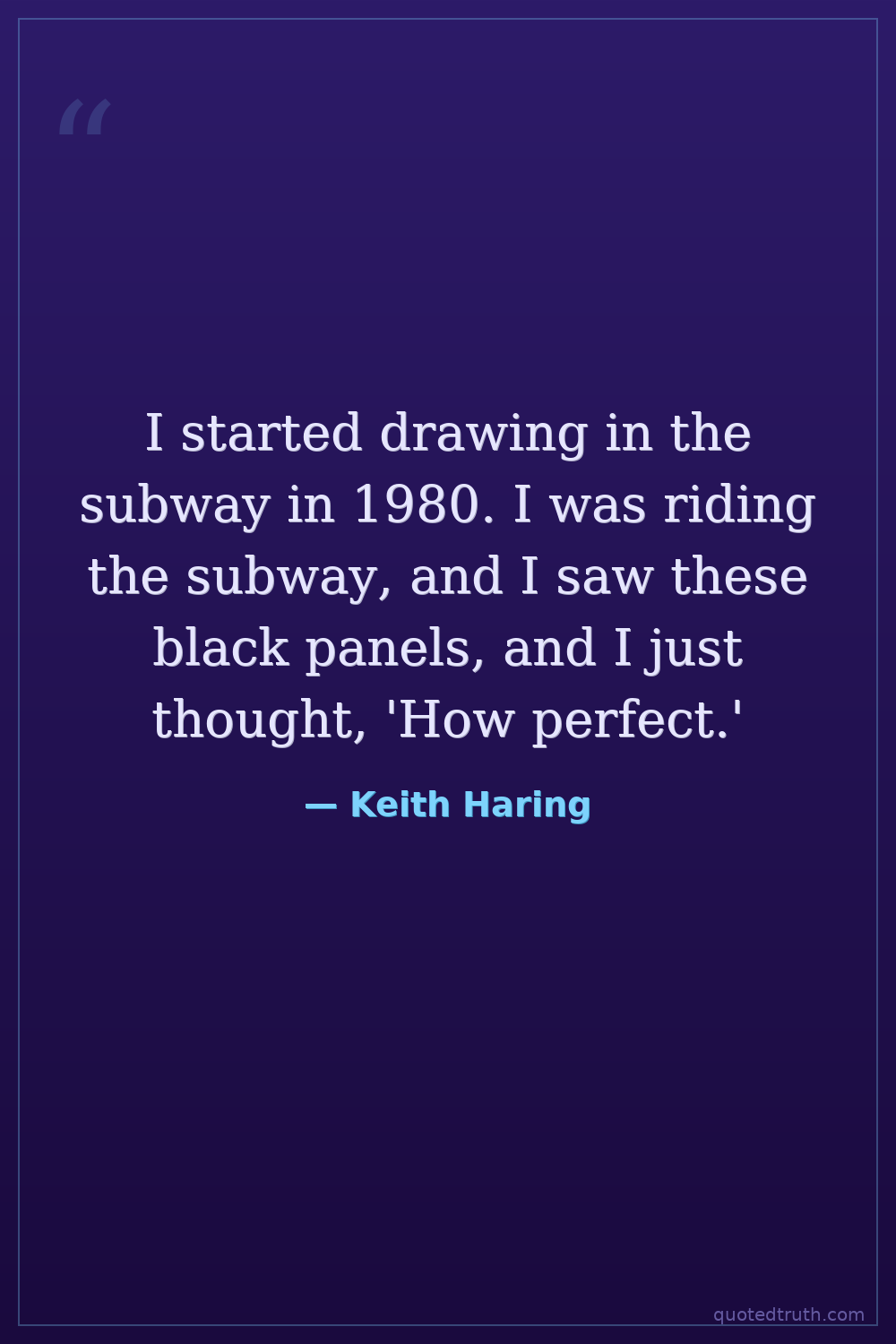 I started drawing in the subway in 1980. I was riding the subway, and I saw these black panels, and I just thought, 'How perfect.'