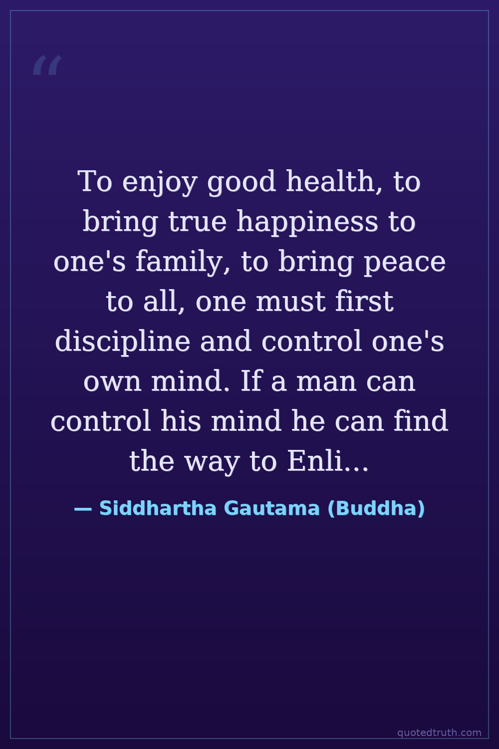 To enjoy good health, to bring true happiness to one's family, to bring peace to all, one must first discipline and control one's own mind. If a man can control his mind he can find the way to Enlightenment, and all wisdom and virtue will naturally come to him.