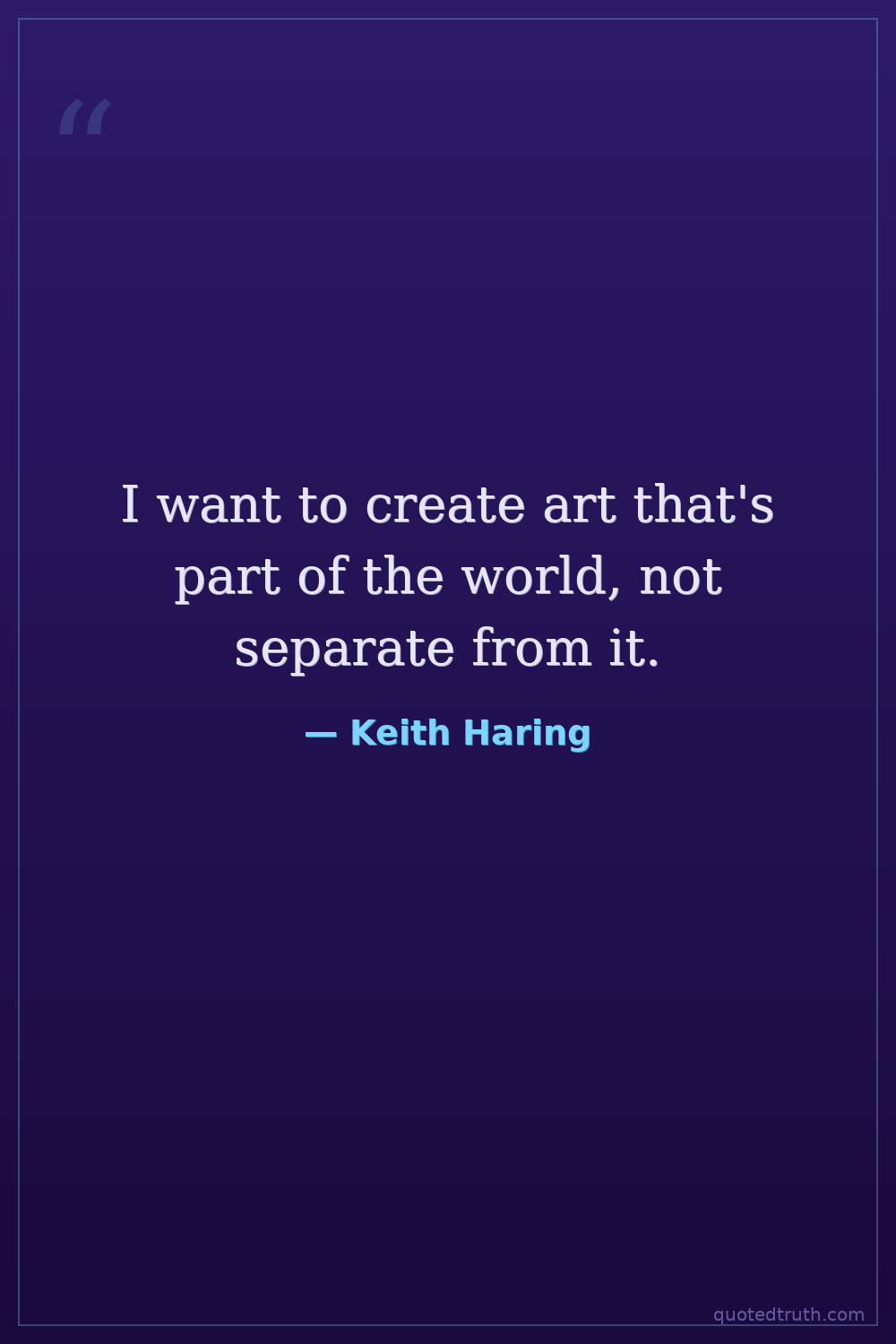 I want to create art that's part of the world, not separate from it.