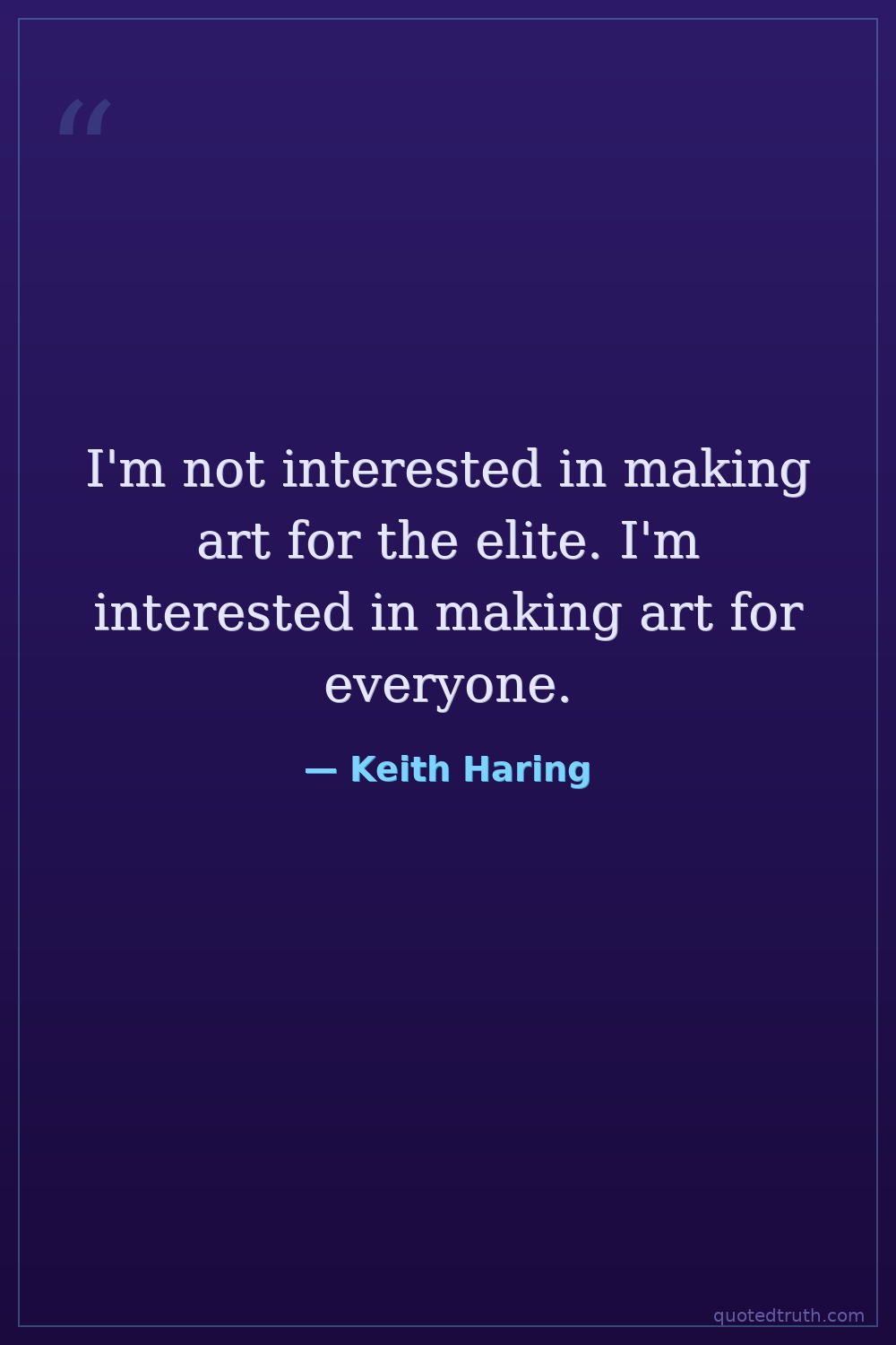 I'm not interested in making art for the elite. I'm interested in making art for everyone.