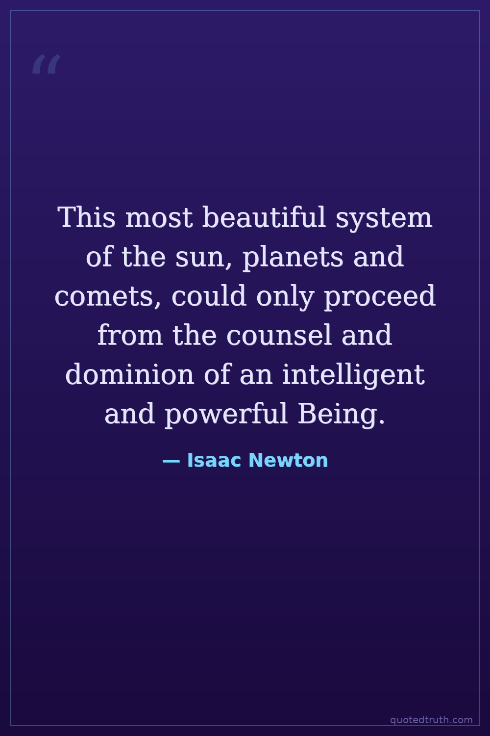This most beautiful system of the sun, planets and comets, could only proceed from the counsel and dominion of an intelligent and powerful Being.