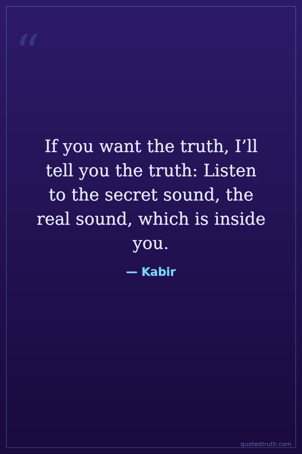 If you want the truth, I’ll tell you the truth: Listen to the secret sound, the real sound, which is inside you.