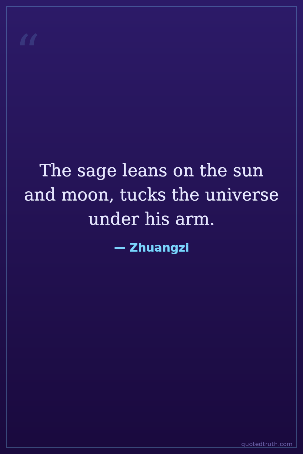 The sage leans on the sun and moon, tucks the universe under his arm.