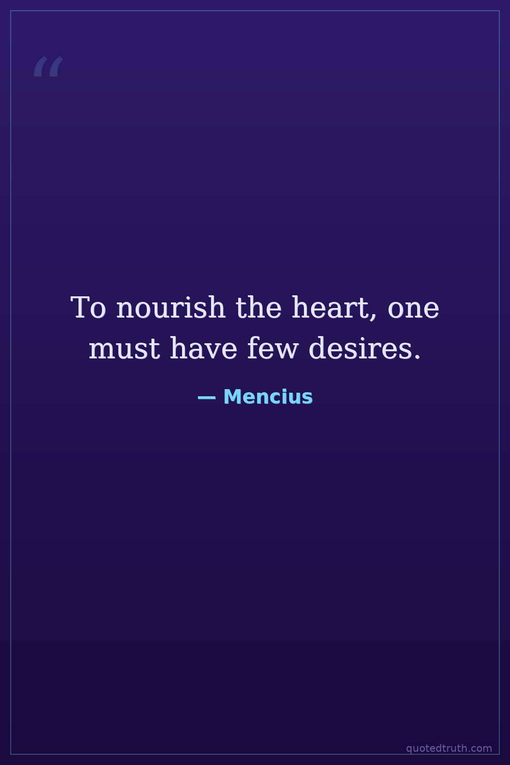 To nourish the heart, one must have few desires.