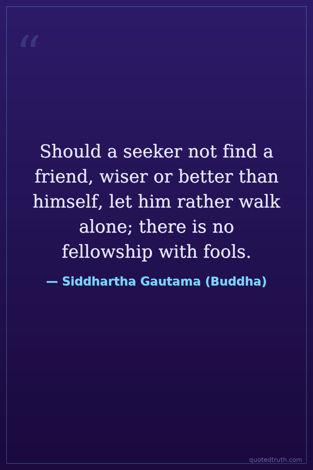 Should a seeker not find a friend, wiser or better than himself, let him rather walk alone; there is no fellowship with fools.