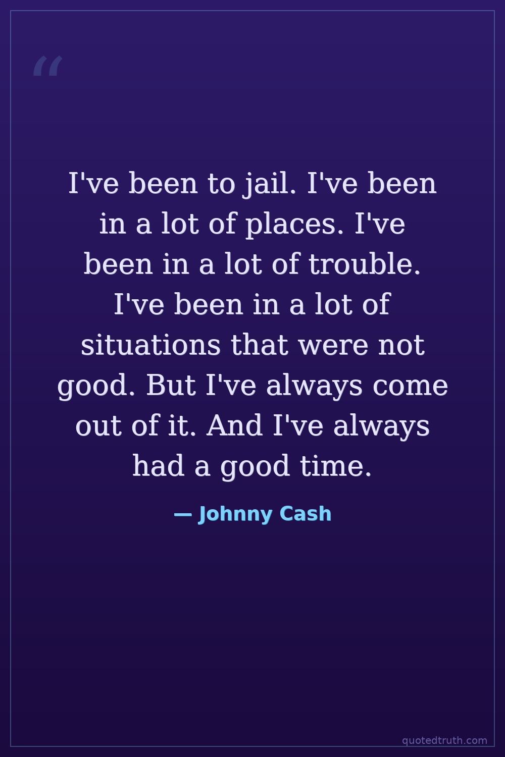 I've been to jail. I've been in a lot of places. I've been in a lot of trouble. I've been in a lot of situations that were not good. But I've always come out of it. And I've always had a good time.
