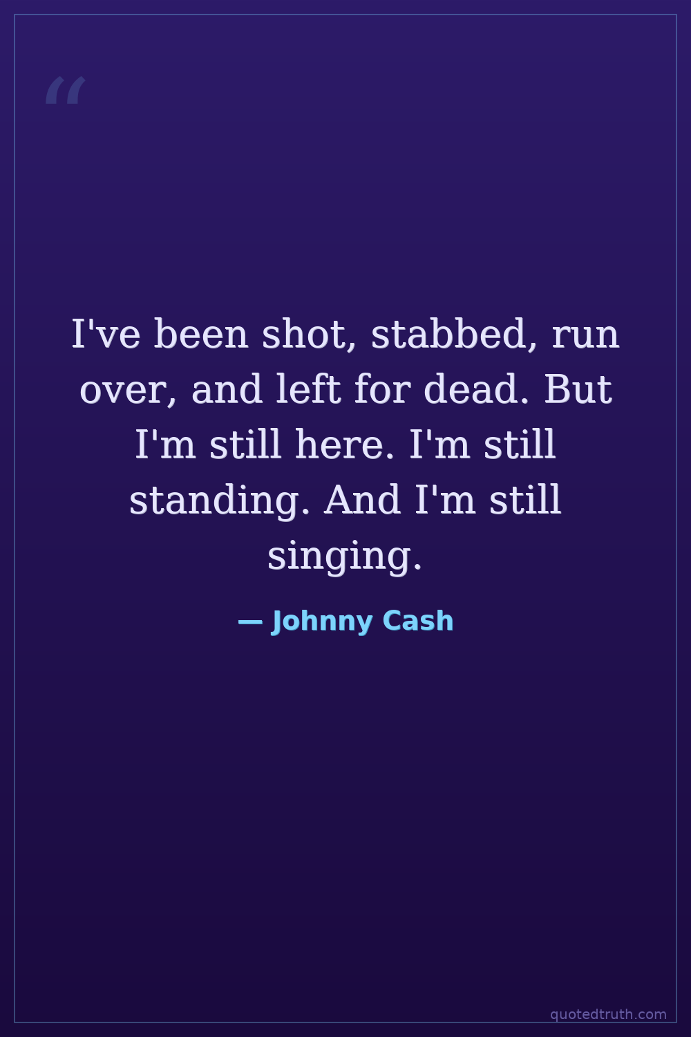 I've been shot, stabbed, run over, and left for dead. But I'm still here. I'm still standing. And I'm still singing.