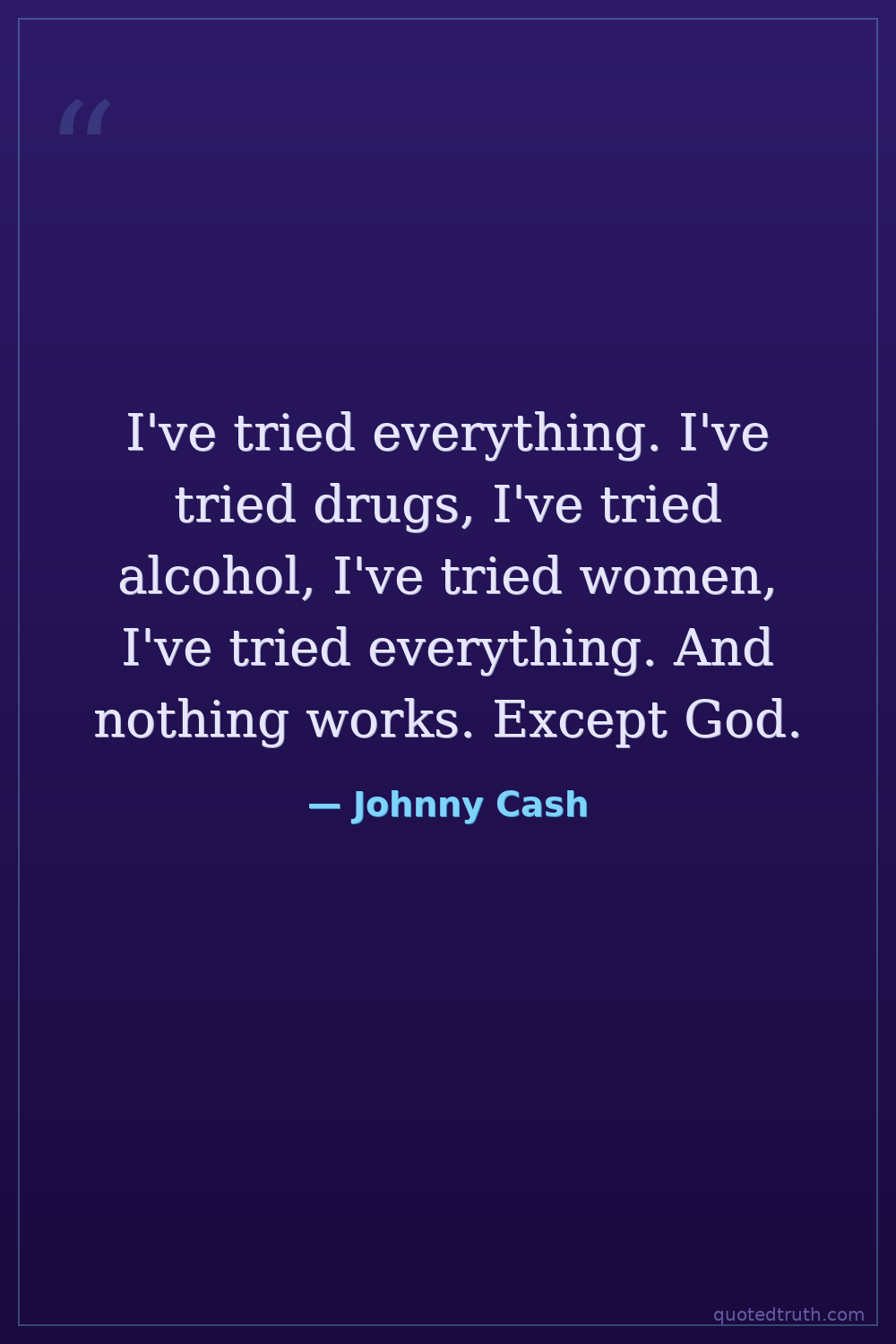 I've tried everything. I've tried drugs, I've tried alcohol, I've tried women, I've tried everything. And nothing works. Except God.