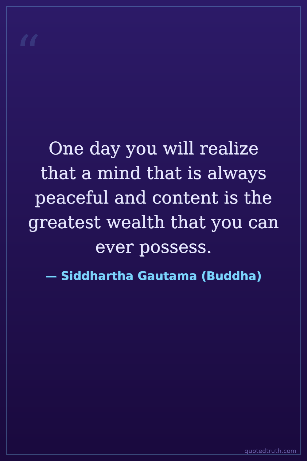 One day you will realize that a mind that is always peaceful and content is the greatest wealth that you can ever possess.