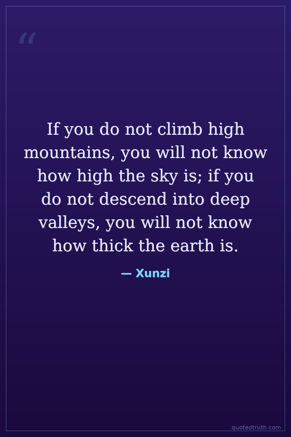 If you do not climb high mountains, you will not know how high the sky is; if you do not descend into deep valleys, you will not know how thick the earth is.