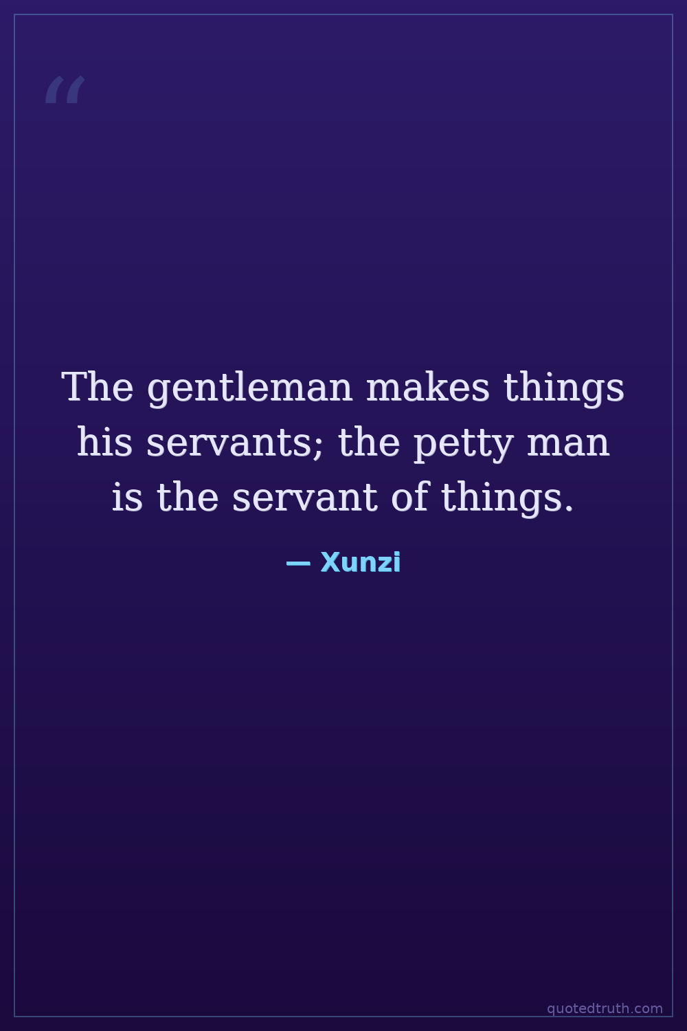The gentleman makes things his servants; the petty man is the servant of things.