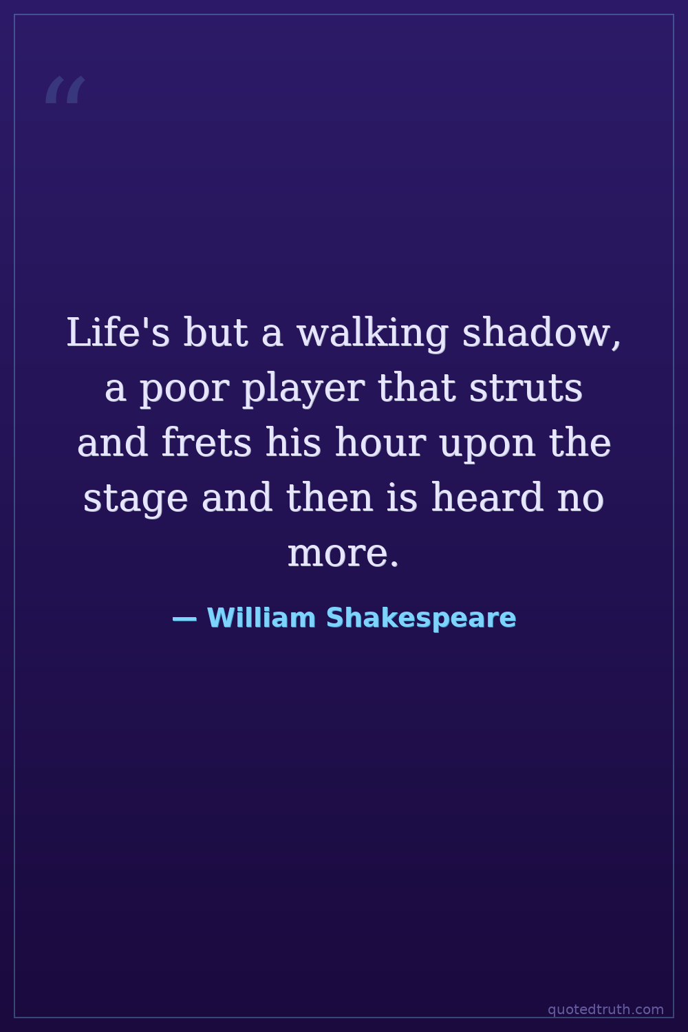 Life's but a walking shadow, a poor player that struts and frets his hour upon the stage and then is heard no more.