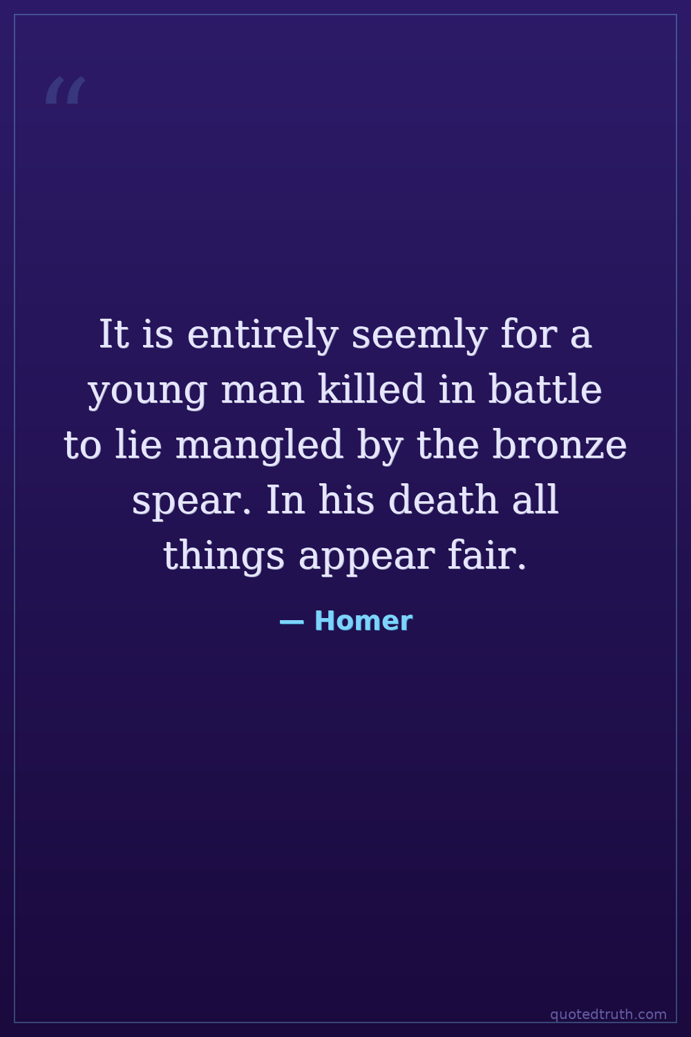 It is entirely seemly for a young man killed in battle to lie mangled by the bronze spear. In his death all things appear fair.