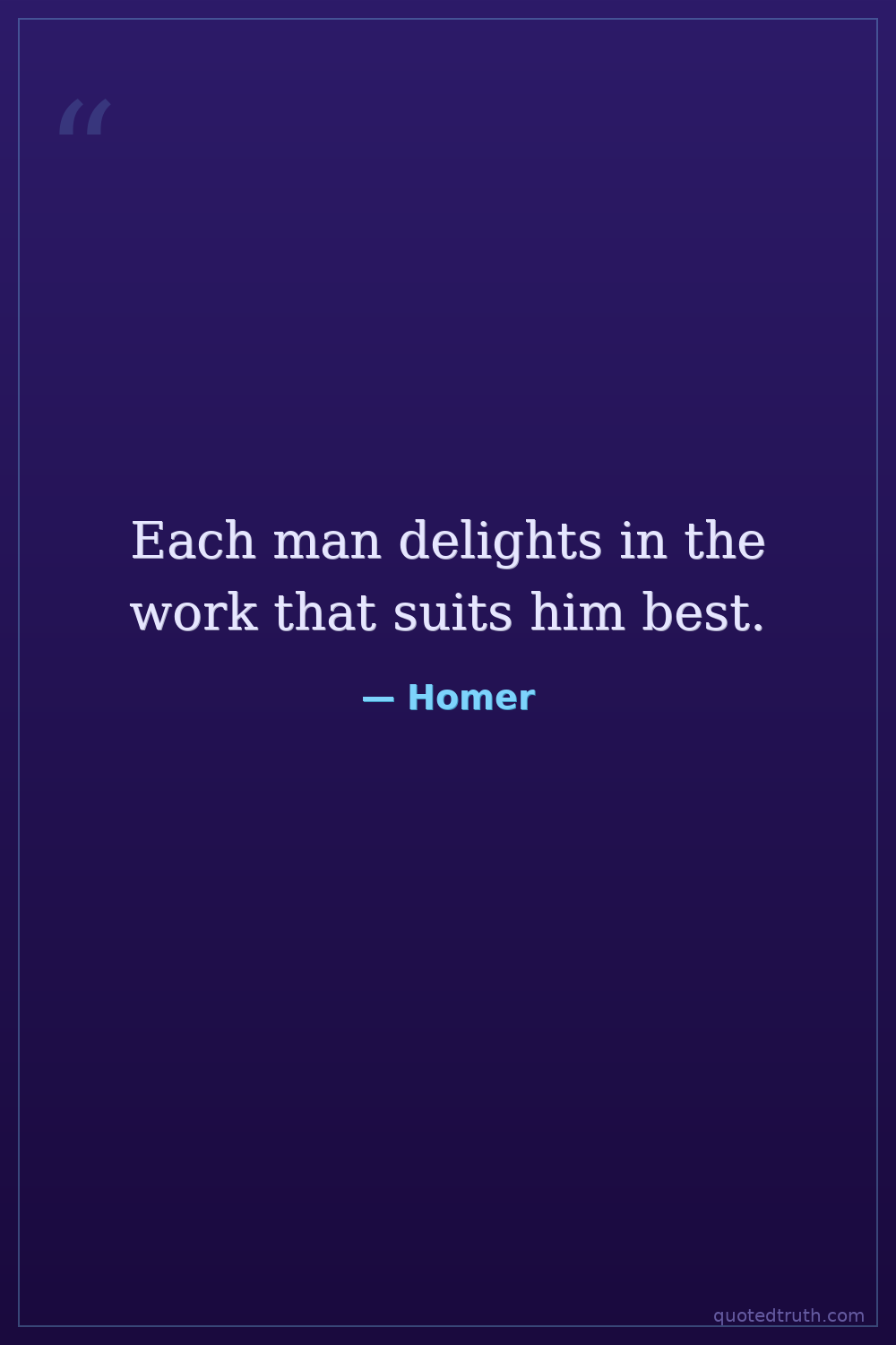 Each man delights in the work that suits him best.