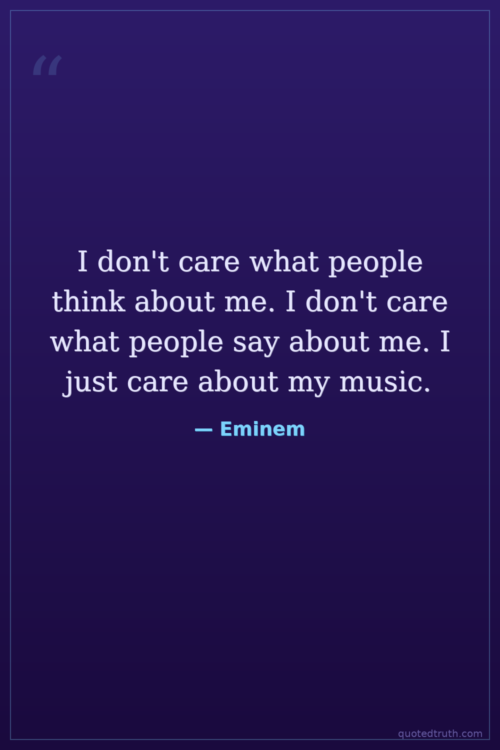 I don't care what people think about me. I don't care what people say about me. I just care about my music.