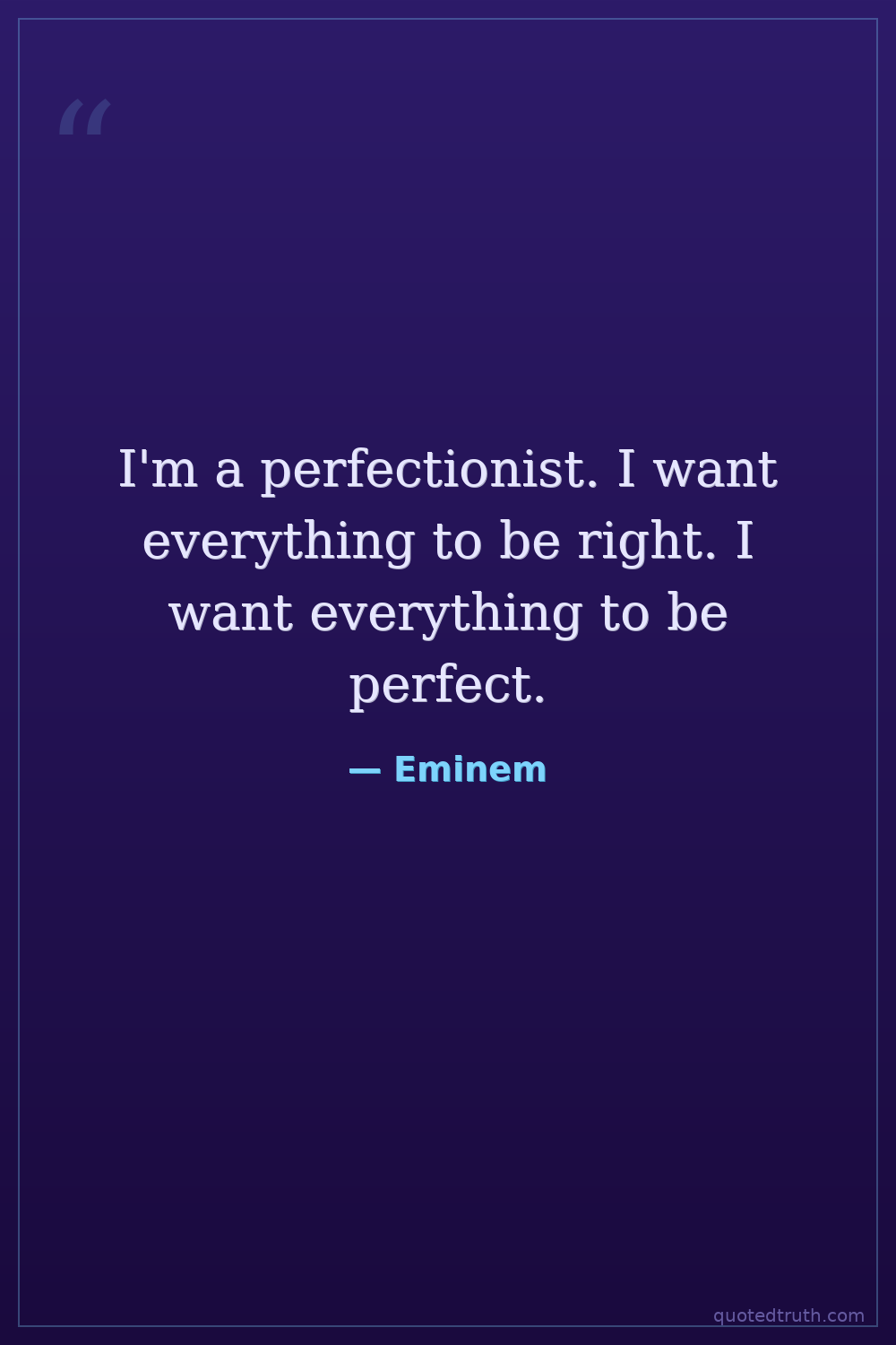 I'm a perfectionist. I want everything to be right. I want everything to be perfect.