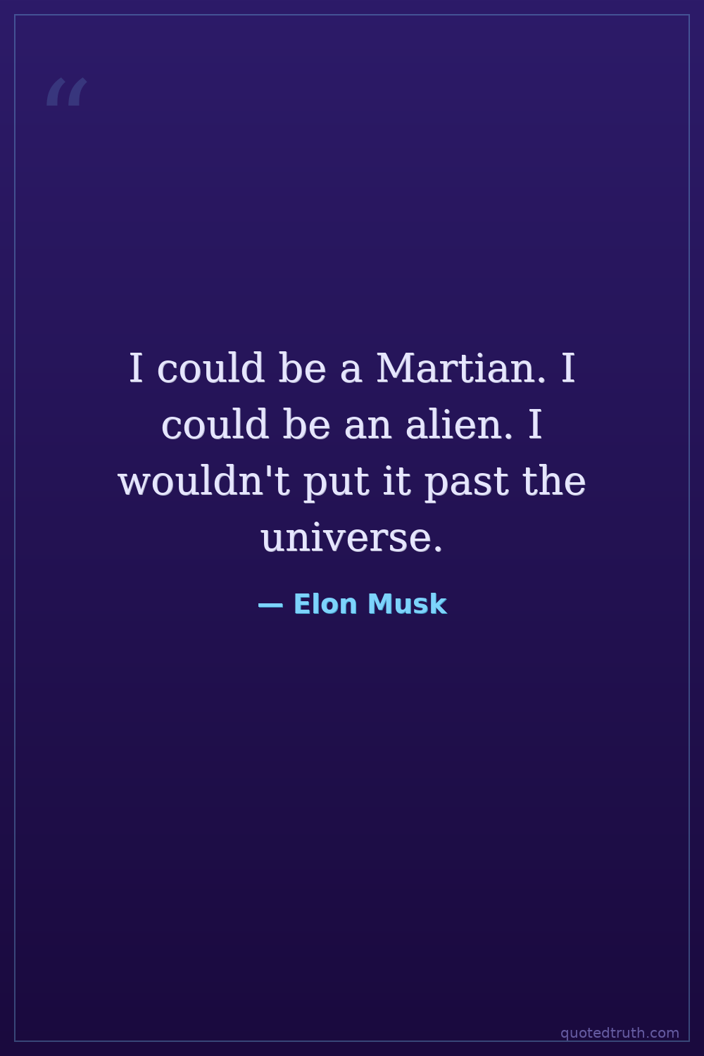 I could be a Martian. I could be an alien. I wouldn't put it past the universe.